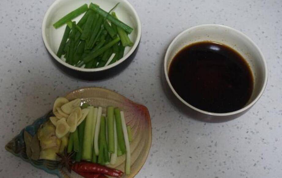 5、准备好葱段姜片蒜瓣,这里有个很多人不知道的小窍门,不要用大葱,用香葱。而且小葱把葱白和葱绿分开用。葱白是一开始爆香的时候用,葱绿则是刚入调味料准备红烧带鱼的时候再放。这样做出来的带鱼透着葱香,而且还有淡淡的葱香甜味,不信您试试。