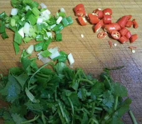 1、准备食材:午餐肉1盒、黄瓜3根、香菜适量、蚝油适量、葱花适量、小米椒2个、盐适量、百香果适量、白醋适量。
