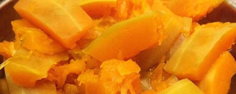 南瓜饼。南瓜清洗干净之后把瓜瓤掏出来,切成块然后清洗一遍,放进蒸锅里蒸熟。