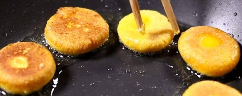 面团醒半小时后,把面团搓成剂子,用手轻轻一压,锅中倒油,南瓜饼放入锅中,煎至两面金黄酥脆即可。