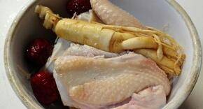 大枣、姜片、蒜瓣等。做法:1、先将鸡洗干净,放入沸水中灼去表面血水,然后将鸡,鲜人参,红枣,姜片等放入炖盅,加入四碗清水。