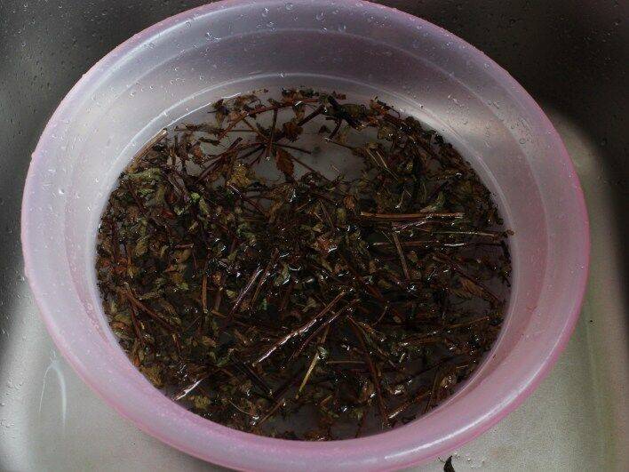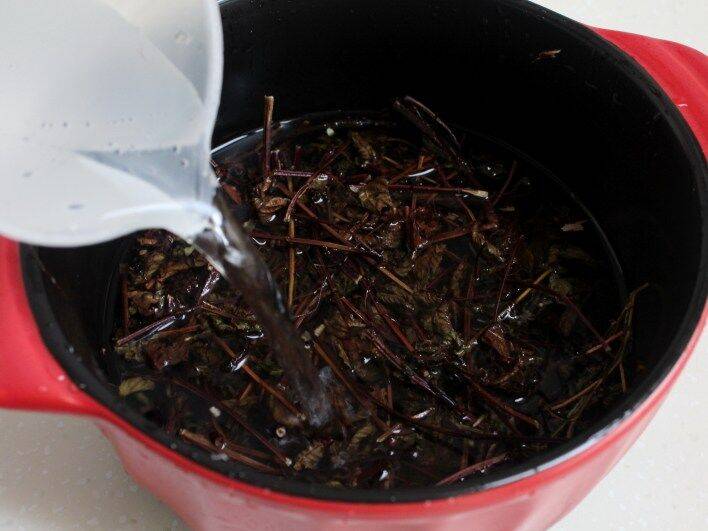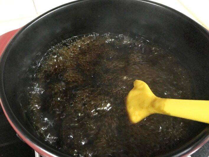 8、然后关火,将粘稠液倒入碗中,冷却定型。