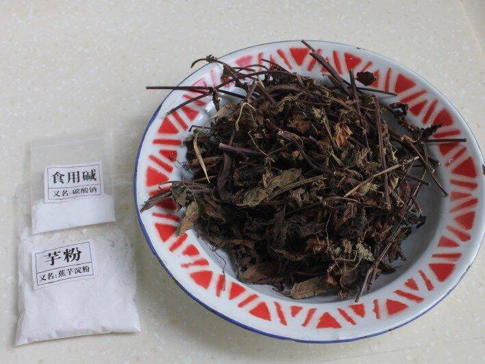 1、准备好烧仙草25克,食用碱粉2克和芋粉20克。