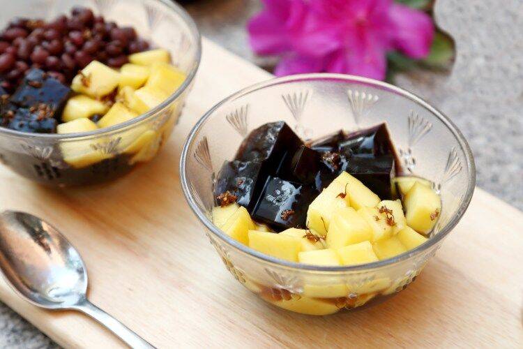 11、或者切些芒果块,与烧仙草拌在一起,就是芒果烧仙草。