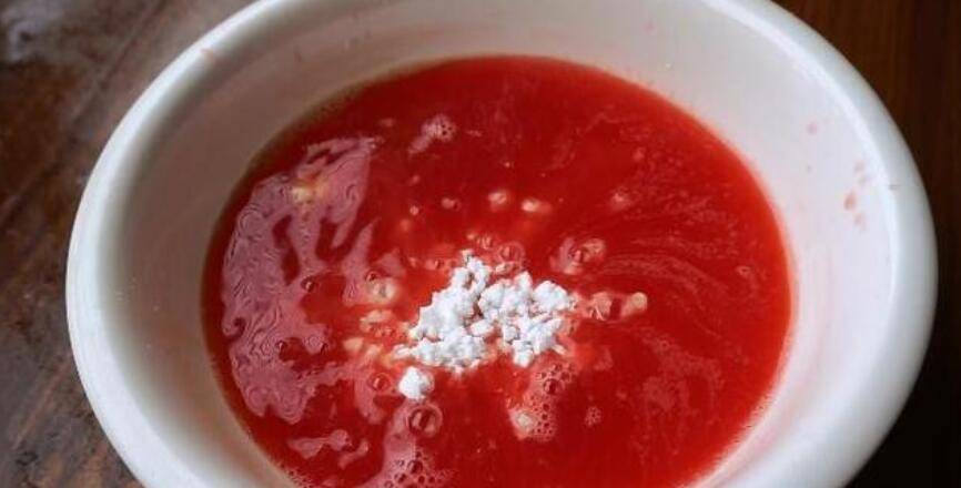 3、淀粉水很容易沉淀,下锅前需要再次搅动一下。