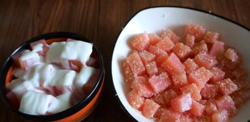 8、如果做成零食,就给它切小一点,裹上椰蓉或者白糖都可以,白糖一定要用细的那种,口感会更好,还可以搭配酸奶或者蜂蜜一起吃,口味独特,无添加剂,小孩也爱吃。
