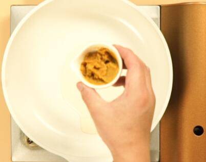 3、另起锅,锅中热油,加入熟鸡蛋黄炒香。