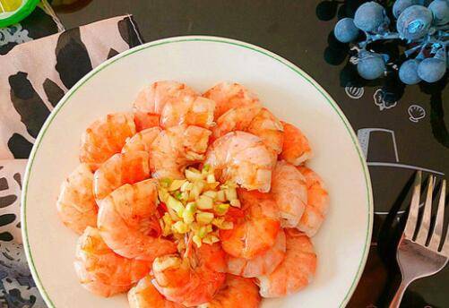 用料:河虾200克,蒜瓣4个,盐3克,鲜点蘸鲜露10毫升。