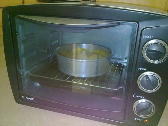 7、倒入铺上油纸的模具中,入烤箱180度40分钟。