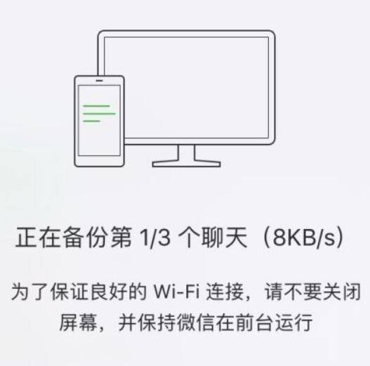 4、网络连接正确后,点备份聊天记录到电脑,电脑上会出现提示让打开手机微信。