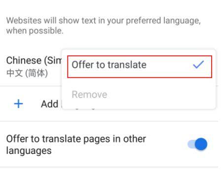 6、在弹出的菜单选项中选择offer to translate功能,手机chrome浏览器即可显示为中文。