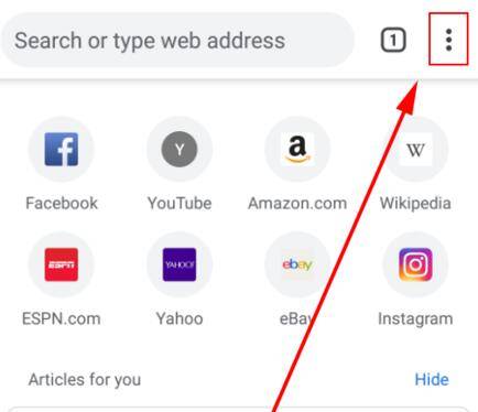 1、打开手机chrome浏览器,点击右上角的菜单按钮。