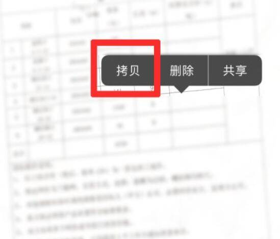 在弹出的工具栏中选择“拷贝”。