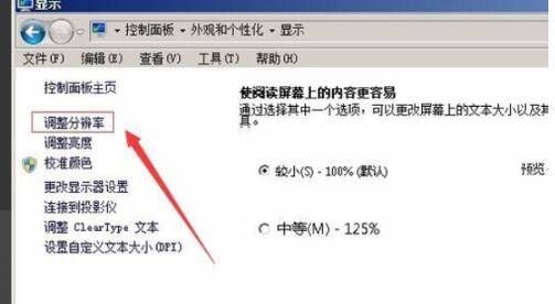 在显示页面上选择“调整分辨率”的功能选项。