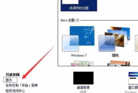 在“个性化”页面上,选择打开“显示”的功能选项。