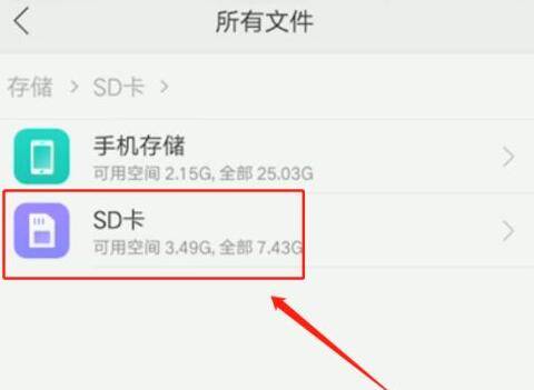 2、打开所有文件后会出现手机存储和SD卡选项,点击SD卡选项。