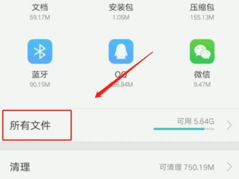 1、首先进入文件管理,在文件管理界面点击所有文件。