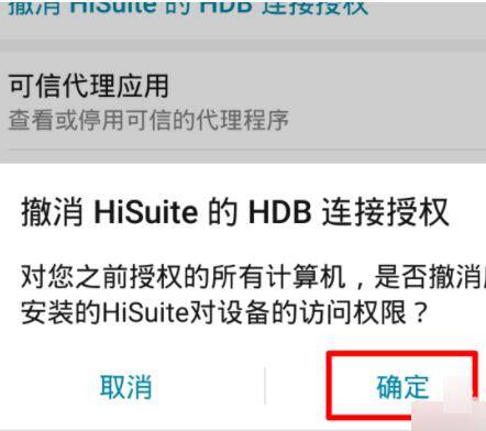 4、选择点击撤销Hisuite的HDB连接授权的选项。