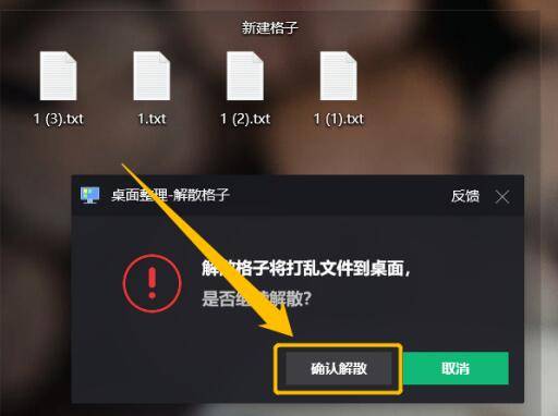 5、如果不想保留这个格子,可以通过右键点击“解散该格子”来删除格子,操作完毕后格子将会删除,且将里面的文件解散到桌面。