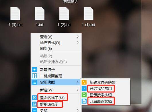 4、在格子空白区域右键,可以选择重命名格子、解散格子、开启我的常用、开启最近文档等便捷功能。
