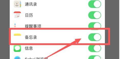 4、在这里只要备忘录选项被打开则说明有备份,可以将手机还原备份即可将备忘录恢复出来。