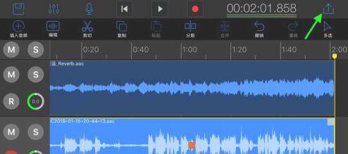 7、待录制完成后。点击停止按钮。录音就添加到音轨2上面了。此时,可以对干声点击编辑操作,进入单轨编辑模式对音频进行降噪和EQ等处理。
