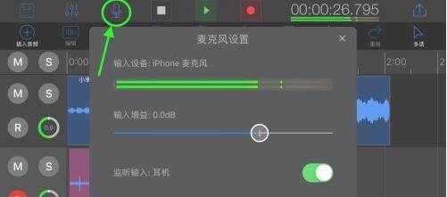 6、可以通过点击 第一排 第三个 麦克风图标 的按钮来设置麦克风的增益和监听麦克风的输入(监听必须要插上耳机)。