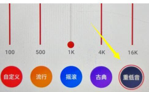 5、进入均衡器界面,找到重低音,进行调整合适音量即可完成。
