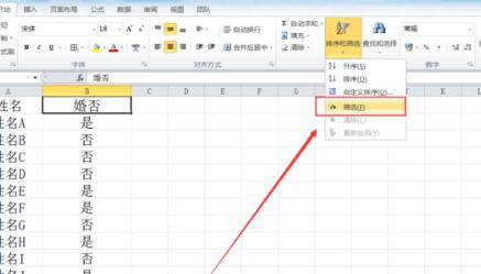 2、点击下拉菜单选择,筛选点击进入。