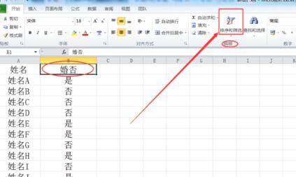 1、打开电脑,打开相应的EXCEL表格,找到上方菜单栏的开始-排序和筛选。
