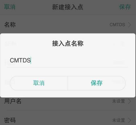 6、点入接入点“名称”,输入“CMTDS”大写字母,然后保存。