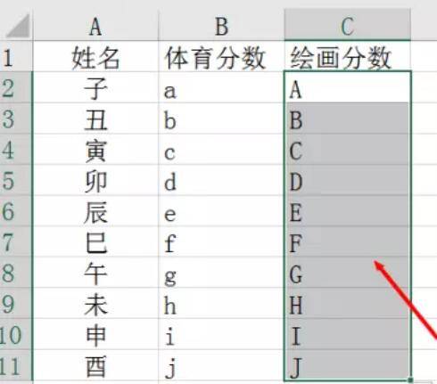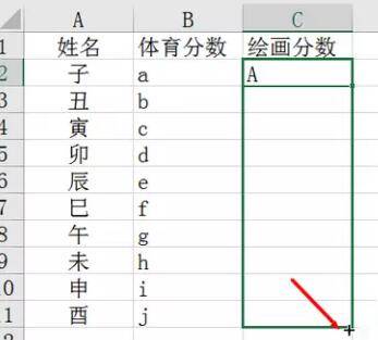 5、点击确定回到数据表中,将光标放在单元格右下角,并向下拖拉进行填充。
