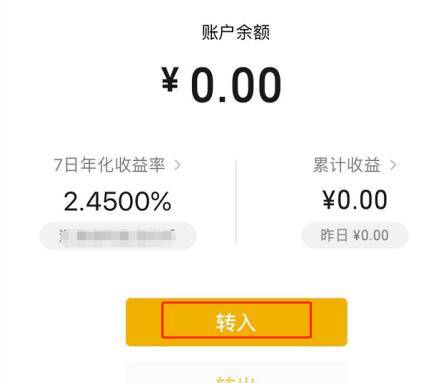 4、进入零钱通主页后,点击下方的转入按钮。