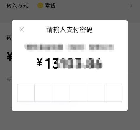 7、在弹出的窗口中,输入支付密码,通过验证后即可完成转入。