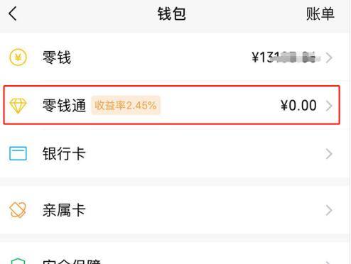 3、在打开的钱包页面内,点击下方的零钱通选项。