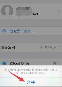 4、帐户登录到iCloud后接着点击合并,并且查看一下iCloud上面通讯录是否开启了同步,如果开启的话,通讯录就会自动备份在苹果iCloud云端服务器上面。