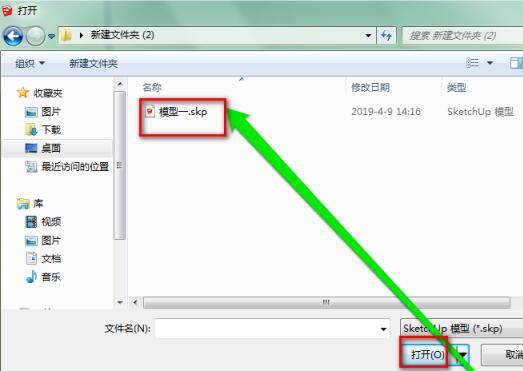 3、在弹出页面中,选择需要打开的skp后缀文件,再单击右下角的打开。