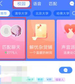 点击“校园”,界面将出现与之匹配的聊天内容。
