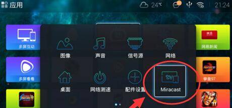 智能电视打开后,使用电视机的遥控器进入电视应用,点击“右下角”的Miracast。