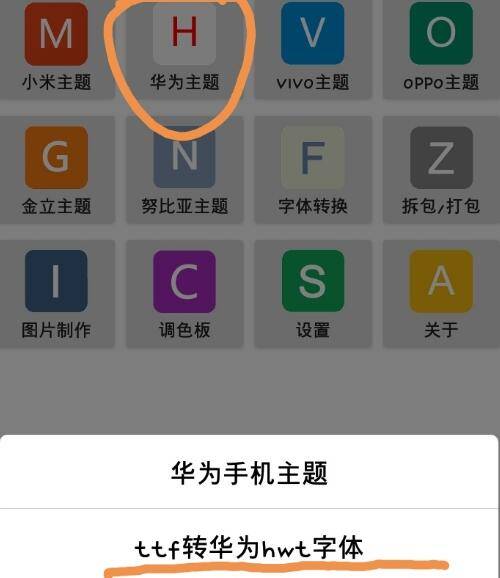 2、点击华为主题,选择ttf转hwt字体。