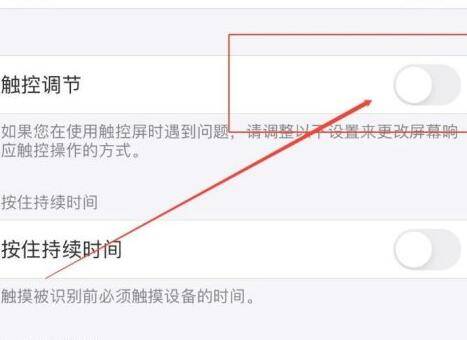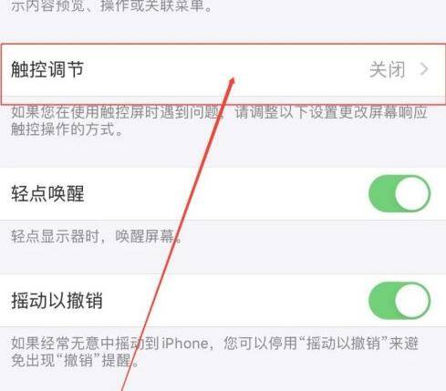 进入“触摸调节”页面后找到“触摸调节”,点开右边相对应的按钮。