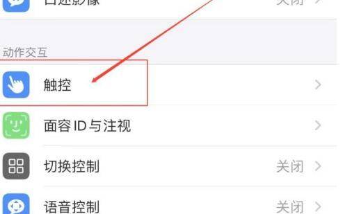 在辅助功能的页面,选择向下滑动,选择点击“触控”的选项。