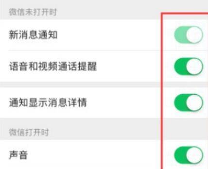 6、进入之后,把关于消息通知的按钮都打开即可。