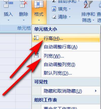 4、在它的下拉菜单栏里面分别选择行高和列宽。