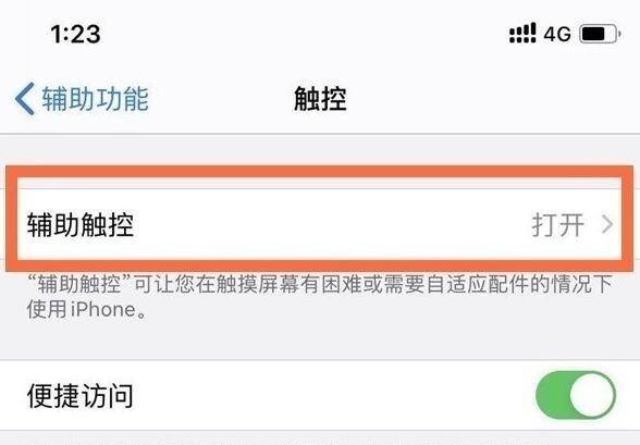 3、点击辅助触控,将辅助触控右边的电源开关开启即可。