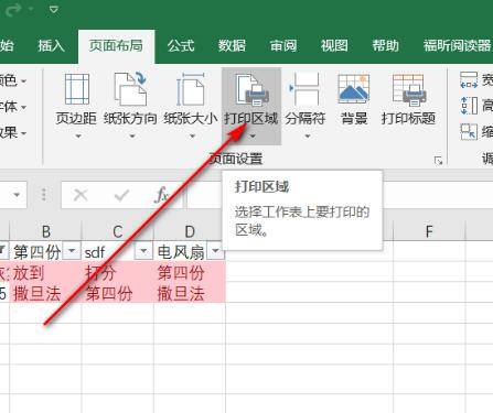 3、打开的界面中点击打印区域按钮。