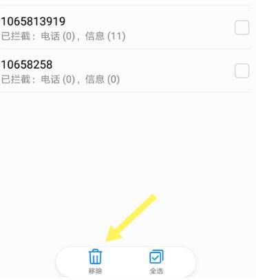 8、点击移除,即可解除对此号码的短信拦截。