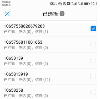7、勾选需要取消拦截的电话。