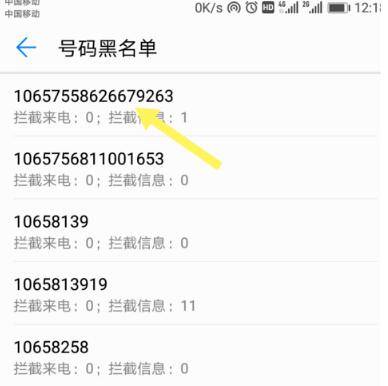 6、在拦截号码列表里找到自己要取消拦截的号码。