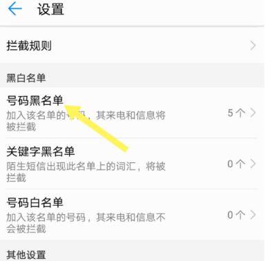 5、打开号码黑名单选项。